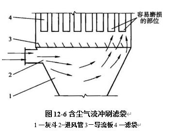 下述原因易導致含塵氣流對濾袋的沖刷, 除塵器釆用灰斗進風,而且沒有采取氣流分布裝置,或氣流分布裝置效果欠佳.設在灰斗上沿的氣流分布裝置不合理,未起到均布作用,導致濾袋受沖刷而破損.