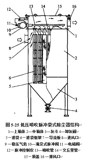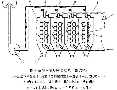負(fù)壓式分室反吹袋式除塵器主要由箱體,濾袋,灰斗,閥門(mén)以及進(jìn)氣和排氣管道,反吹風(fēng)管道組成.典型的負(fù)壓式反吹袋式除塵器取內(nèi)濾形式,濾袋下部開(kāi)口,固定在箱體底部的花板上.上部封頂,吊掛在箱體的頂部.為防止濾袋在清灰時(shí)過(guò)分收縮,...
