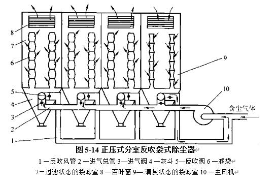 正壓式分室反吹袋式除塵器每個(gè)倉(cāng)室的進(jìn)氣閥和反吹閥(或兩者合在一起的三通切換閥)設(shè)在倉(cāng)室的入口.某倉(cāng)室清灰時(shí),反吹氣流(大氣)從百葉窗進(jìn)入并反向穿過(guò)濾袋而實(shí)現(xiàn)清灰,反吹氣流攜帶著粉塵先進(jìn)入主風(fēng)機(jī),然后與含塵氣體一起進(jìn)入其他...