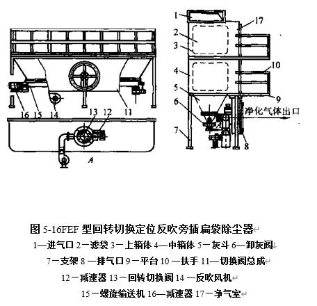 分室回轉(zhuǎn)切換定位反吹袋式除塵器采用多單元組合結(jié)構(gòu).一臺(tái)除塵器可以有幾個(gè)獨(dú)立的倉(cāng)室,倉(cāng)室入口和出口設(shè)有煙氣閥門(mén),人口還設(shè)有導(dǎo)流裝置.每個(gè)倉(cāng)室有一定數(shù)量的過(guò)濾單元,每個(gè)單元分隔成若干個(gè)袋室,各有若干條濾袋.袋室頂部有凈氣出口...