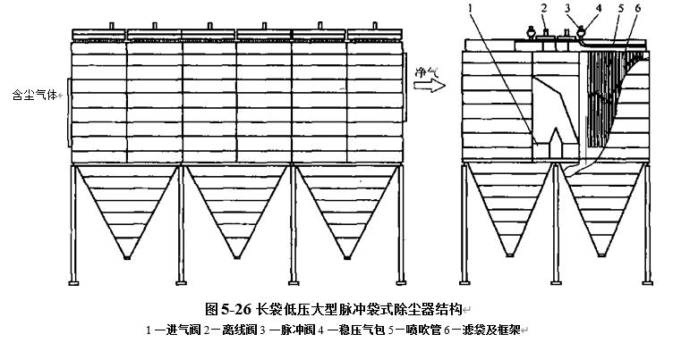 長(zhǎng)袋低壓脈沖袋式除塵器是全面克服MC型傳統(tǒng)產(chǎn)品的各項(xiàng)缺點(diǎn)而推出的新一代脈沖袋式除塵設(shè)備.含塵氣體由中箱體下邊引入,被擋板導(dǎo)向中箱體上部進(jìn)到過(guò)濾袋.凈氣由上箱體排出.