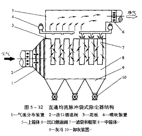 與常規(guī)的袋式除塵器不同,直通均流脈沖袋式除塵器不設(shè)含塵煙氣總管和支管,而是在進(jìn)口喇叭內(nèi)設(shè)氣流分布裝置,將含塵氣流從正面,側(cè)面和下面輸送到不同位置的濾袋,既避免含塵氣流對(duì)濾袋的沖刷,也減緩含塵氣流自下而上的流動(dòng),從而減少粉...