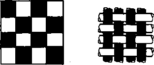 織造物經線和緯線交錯排列的狀態稱為織造物的組織.基本的組織有:平紋組織,斜紋組織,緞紋組織和緯二重組織.通常用組織圖表示織造物的織法,空白部分表示經線在緯線下面,黑色部分表示經線在緯線上面,經緯線重疊處稱為交織點.表示整...