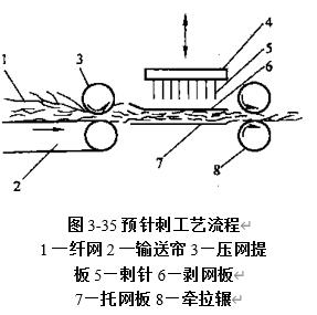 與傳統的紡織技術相比,非織造技術具有工藝流程簡單,生產速度快,勞動生產率高,纖維來源廣泛,工藝容易變化,可生產的品種多等優點.非織造過濾材料的加工一般經由形成纖(維)網,纖網加固和后整理三個過程.