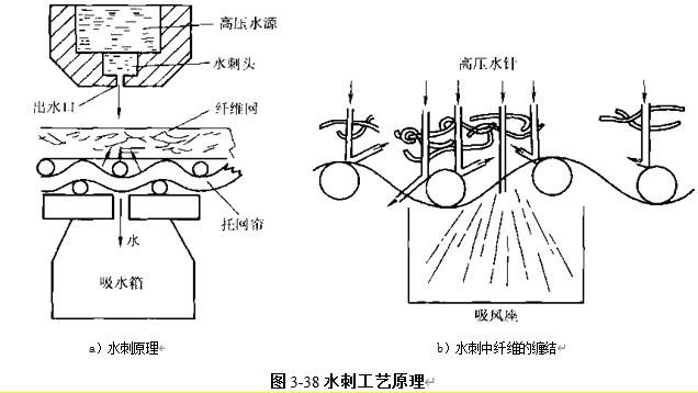 水刺非織造布的工業化生產是20世紀80年代實現的,其原理與針刺法相似,所不同的是將鋼針改為極細的高壓水流,利用水流的穿刺力使纖維網中的纖維相互滲透纏結.水刺法加工工藝的主要優點是:工藝較簡單,產品中無黏合劑,無環境污染;...