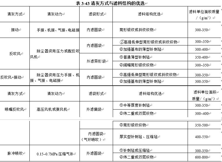 不同清灰方式的袋式除塵器,因清灰能量,濾袋形變特性的不同,宜選用不同結構品種的濾料.機械振動類袋式除塵器是利用機械裝置(包括手動,電磁振動,氣動)使濾袋產生振動而清灰的袋式除塵器. 分室反吹類袋式除塵器是采用分室結構,利...