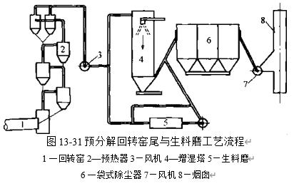 新型干法水泥窯尾生產(chǎn)工藝窯尾通常有4級(jí)或5級(jí)旋風(fēng)筒,干生料喂入第1級(jí)和第2級(jí)之間的管道,隨氣流被帶到第1級(jí)旋風(fēng)筒內(nèi),被來自窯尾的熱煙氣加熱,受熱的生料被分離出來并被氣流帶到另一級(jí)旋風(fēng)筒.