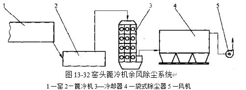 篦式冷卻機(jī)運(yùn)行時(shí),由于冷卻機(jī)的不斷運(yùn)動(dòng)及熟料顆粒間相互碰撞而產(chǎn)生粉塵.同時(shí),因鼓風(fēng)機(jī)鼓入冷風(fēng)和窯的熟料帶入熱風(fēng)而使冷卻機(jī)內(nèi)形成正壓,其中的熟料粉塵一部分隨二次風(fēng)返回窯內(nèi),另一部分熟料粉塵從冷卻機(jī)進(jìn)入除塵器.
