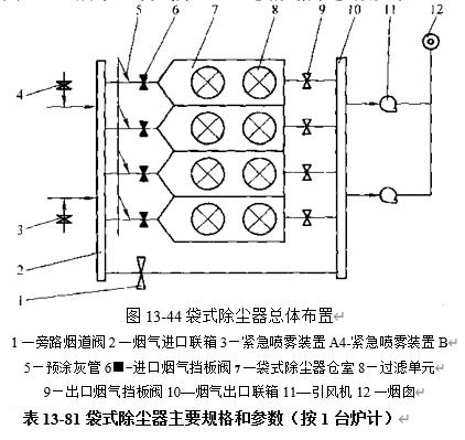 袋式除塵系統(tǒng)配置及功能設(shè)計(jì)應(yīng)根據(jù)爐型,容量,爐況,煤種,氣象條件,操作維護(hù)管理等具體情況確定.通常包括,袋式除塵器.清灰氣源及供氣系統(tǒng),預(yù)涂灰裝置,卸灰和輸灰系統(tǒng),電氣和自動(dòng)控制系統(tǒng)及監(jiān)測(cè)系統(tǒng),煙道及附件等.