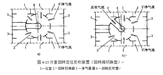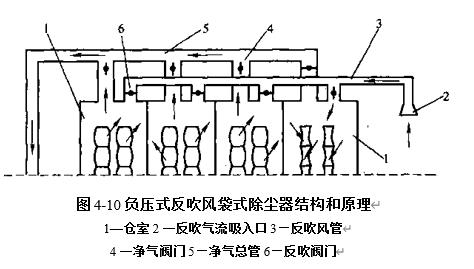 分室反吹清灰裝置有負壓式和正壓式之分.負壓式分室反吹清灰裝置的結構和原理.其清灰過程是逐室進行的.在除塵器的每個倉室出口處設有凈氣閥門和反吹閥門.