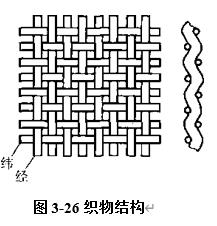 織造物經線和緯線交錯排列的狀態稱為織造物的組織.基本的組織有:平紋組織,斜紋組織,緞紋組織和緯二重組織.通常用組織圖表示織造物的織法,空白部分表示經線在緯線下面,黑色部分表示經線在緯線上面,經緯線重疊處稱為交織點.表示整...