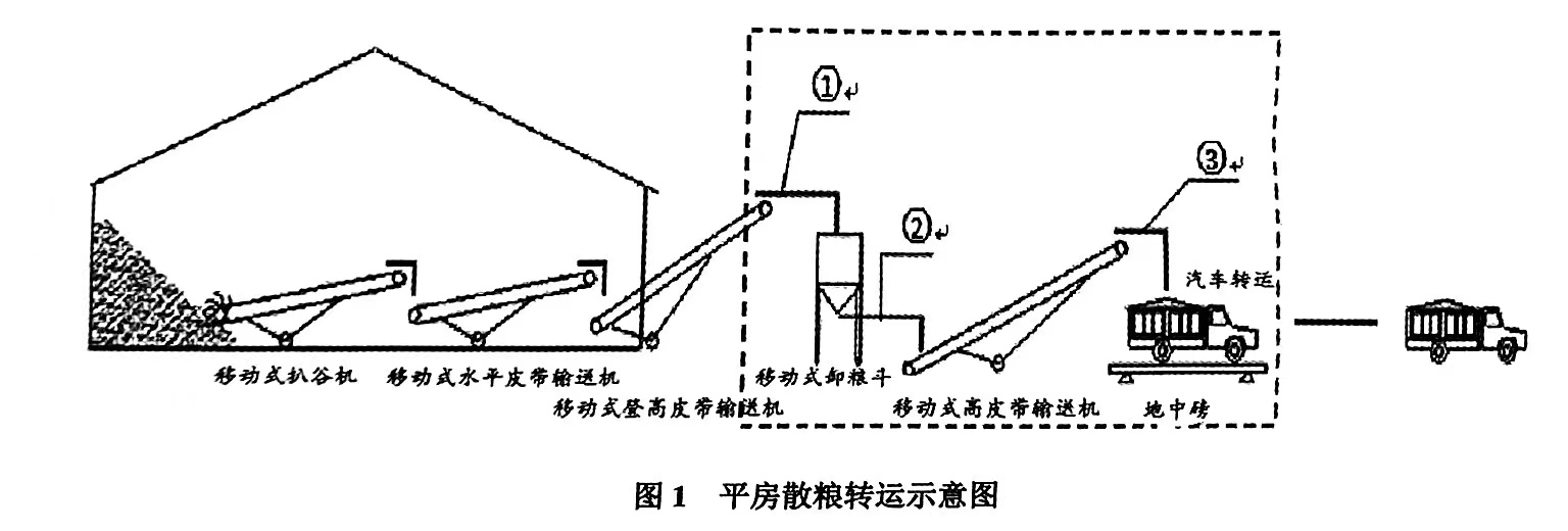 由于平房倉(cāng)轉(zhuǎn)運(yùn)糧食設(shè)備安放在室外,且位置靈活,具有不確定性,所以無法設(shè)置固定吸塵罩.就需通過改進(jìn)移動(dòng)式卸糧斗及登高皮帶輸送機(jī)的結(jié)構(gòu)來滿足抑塵需求.